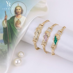 FB0285-pulsera de Oro de 14 quilates con 3 tonos de alta calidad, joyería religiosa, Figaro de latón, San Judas, Tadeo