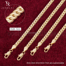 Cadena de eslabones cubanos de 18K, collar de eslabones de 3mm, 4mm, 5mm, 6mm, 7mm de ancho, longitud múltiple